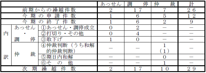 今期(令和2年(2020年)度第4四半期)の紛争処理状況については、申請件数は12件(昨