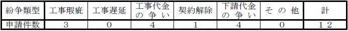 12件の申請のうち、当事者類型は、法人発注者から請負人への争い、請負人から法人発注