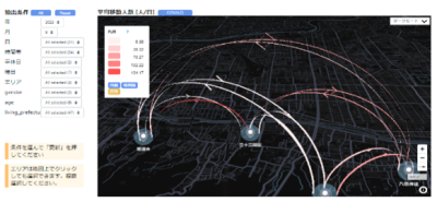 | 本ツールは人流データについて簡易な操作のみで可視化、分析が行えるソフトウェアであり、令和4年度作成した試作版に利用者から声の多かったグラフ機能の追加や操作性の向上などの改良を行い、人流データ可視化ツール2.0として更新版を公開します。本ツールは無償で利用、改編いただくことができるオープンソースです。 また人流データ活用に取り組むために利活用事例を知りたいという地方自治体のニーズを踏まえ、地方自治体等における人流データ活用の取組を収録した利活用事例集を作成するとともに、過年度に公開した「人流データ利活用の手引き」についても、わかりやすさに配慮した更新を行いました。是非ご活用ください。 |