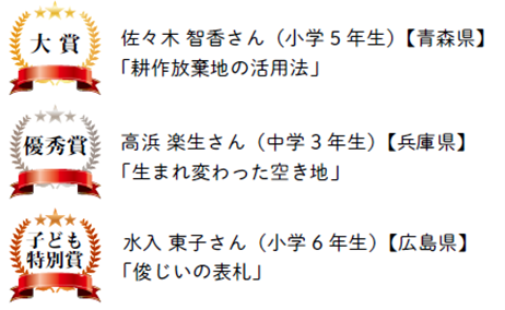 〇『令和6年「土地月間」作品コンテスト』について、審査委員及び土地関係団体による審査を行い、受賞作品が決定しました。受賞作品は、ポスターや冊子に掲載され、広報・啓発に活用されます。 |