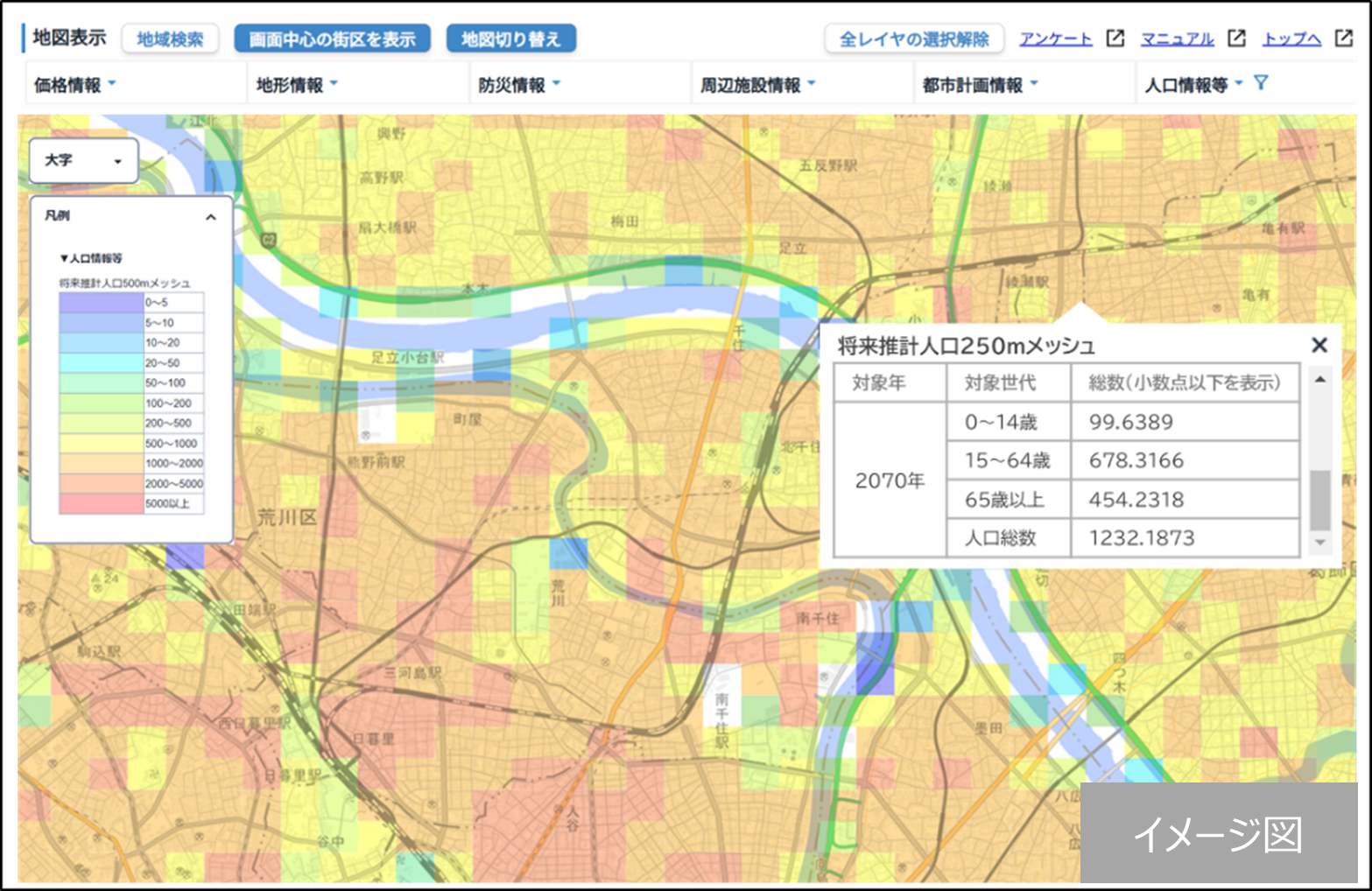 | 将来推計人口250mメッシュ |