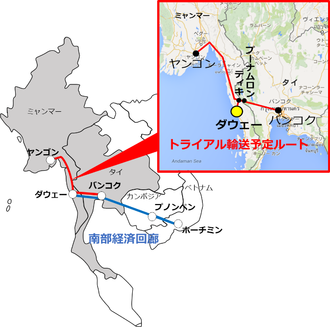 | 2月8日(月) | ヤンゴン近郊へ輸送 | ヤンゴン港着 (2月中旬インド向け輸出予定) |