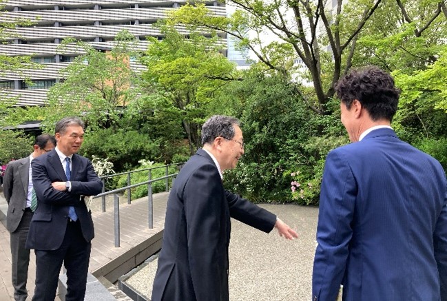 | 国土交通省では、都市における緑地の質・量両面での確保等に向けた取組を推進しております。その一環として、斉藤国土交通大臣は、4月23日(火)「大手町タワー(大手町の森)」・「赤坂インターシティAIR」の都市緑地を視察しました。 |