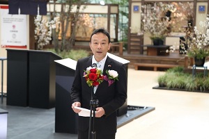 日本国政府展示の開会式として、屋内展示会場において在トルコ日本大使館勝亦公使が挨拶しました |
