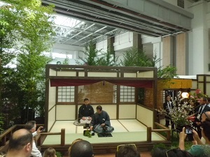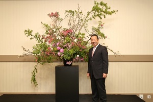 開会式後のレセプションにおいて、屋内展示統括プロデューサー村松文彦氏によるいけばなのパフォーマンスを行いました |