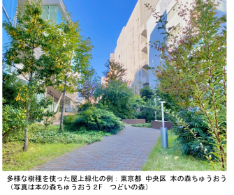| 令和5年には、約15.7haの屋上緑化、約5.0haの壁面緑化が新たに創出されました。 |