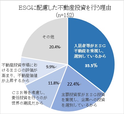 ・投資家がESG不動産への投資を行う理由の1位は「入居者や入居企業がESGを重視して入居を選別しているから」(3割超、右図参照)