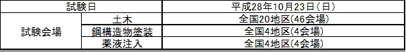 ・ 実地試験 :土木、鋼構造物塗装、薬液注入ともに得点が60.0%以上を合格基準とする。