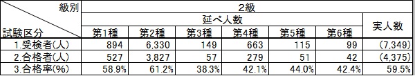 ※ 2級の種別ごと受検者及び合格者数についてはその他を参照