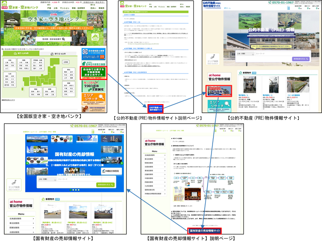 「全国版 空き家・空き地バンクサイト」のTOPページ⇒公的不動産専用バナー⇒公的不動産のTOPページ⇒国有財産専用バナーを設置。