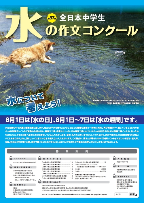 ○後援(予定): 文部科学省、厚生労働省、農林水産省、経済産業省、環境省、全日本中学校長会、独立行政法人水資源機構、水の週間実行委員会