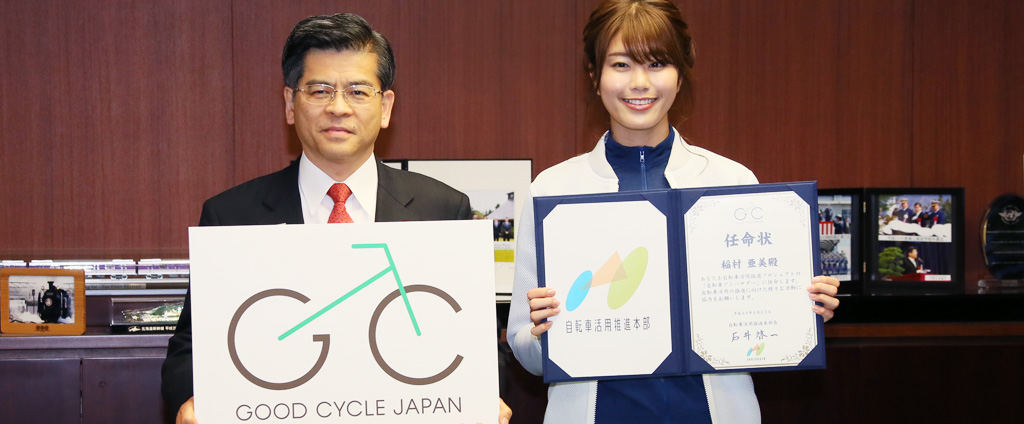 2018年4月23日、国土交通省 自転車活用推進本部では、自転車のマナーや魅力を多くの人に発信することを目的に、タレントの稲村亜美さんを『自転車アンバサダー』に任命。同日、その任命式が東京・国土交通省で行われ、自転車活用推進本部・本部長も務める石井啓一国土交通大臣(当時)から、任命状を授与された。