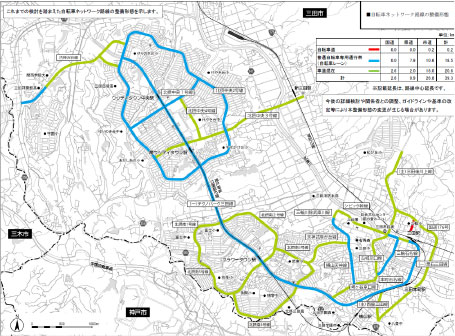 <自転車ネットワーク計画の例(兵庫県三田市)>【出典:三田市】