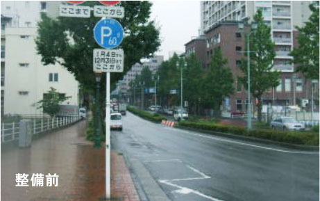 自転車専用通行帯の設置をはじめ、安全で快適な自転車通行空間を確保するために、利用率の低いパーキング・メーターの撤去、植樹帯を活用した停車帯の設置、自転車専用通行帯の設置区間での駐停車禁止の規制や停車帯を設置するなどの実施が検討されています。
