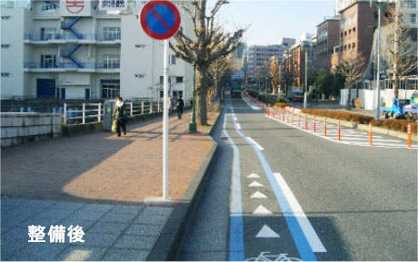 <自転車専用通行帯の例(埼玉県さいたま市)>【出典:国土交通省】