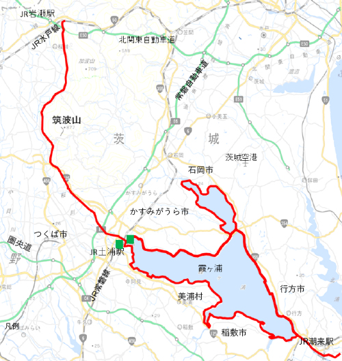 - 区間:JR岩瀬駅~JR土浦駅および霞ヶ浦湖岸一周(茨城県)