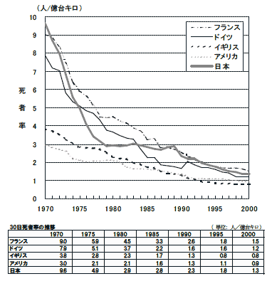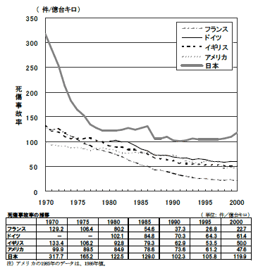 平成15年の目標 | : | 1億台キロあたり約116件 |