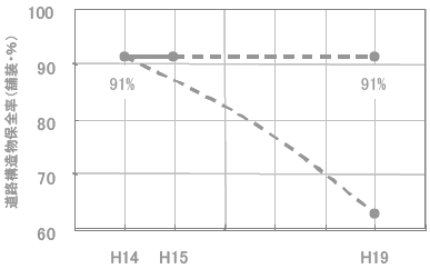 橋梁に関する道路構造物保全率については、平成14年度の86%を、平成19年度までに約93%とすることを中期的な目標とする。