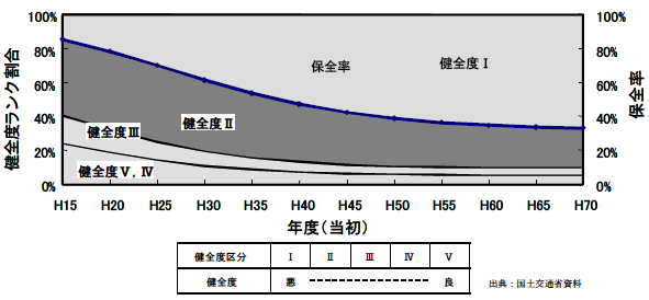 道路構造物の健全度の推移をマクロ分析し投資計画を策定 |