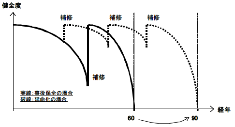 | ※2 | 予防的修繕:劣化が進行して構造物に大きな損傷を発生させる前に適切な修繕を行うこと。 |