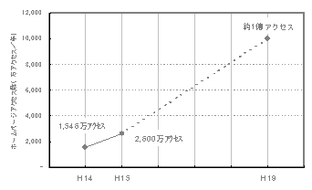 | 現在の値 | : | 年間1,546万アクセス(平成14年度) |