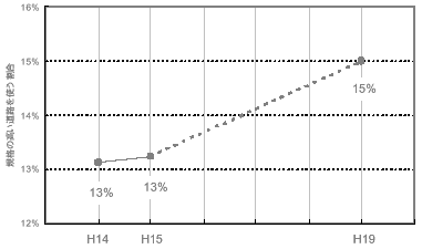 本指標については、平成14年度の13%を、平成19年度までに15%とすることを中期的な目標とする。(図4-1)