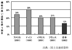 ※ | 「道路交通センサス」(平成11年度)及び国土交通省調査結果(平成13年度及び平成14年度)並びに「陸運統計要覧」(平成13年度)に基づく。 |