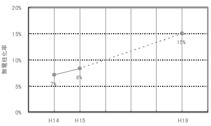 本指標については、平成14年度末の約7%を、平成19年度までに約15%とすることを中期的な目標とする。