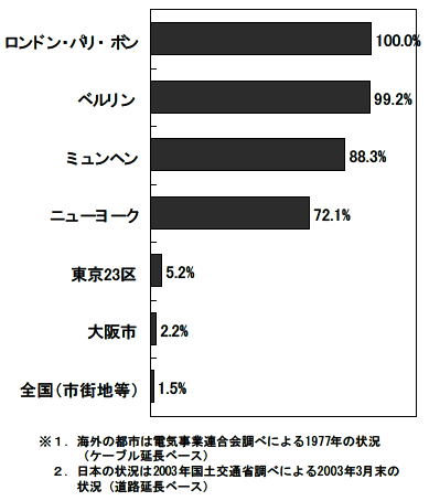 図9−2 欧米主要都市と日本の都市の地中化の現状 |