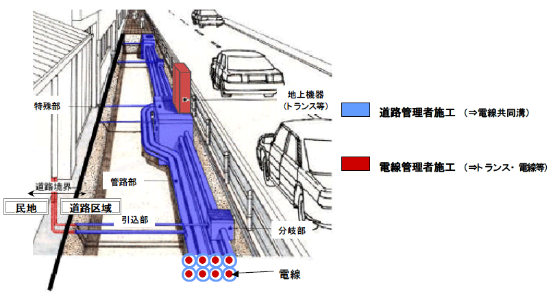 | (3)既存ストックの有効活用 | 既設の地中管路について、管路所有者と協議の上可能であれば、電線共同溝等の一部として活用 |