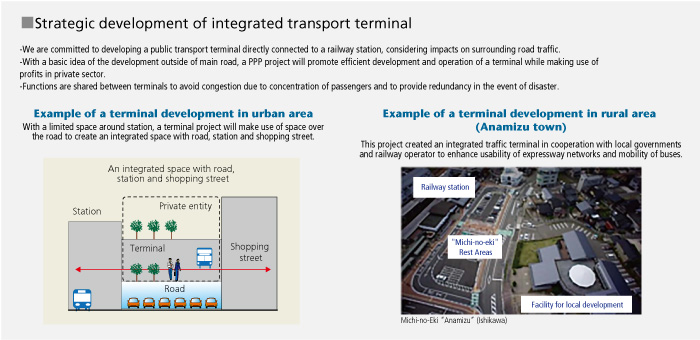 Under the cooperation with city planning and local public transport policy, the MLIT aim to strengthen connection between various traffic modes, to revitalize the area and strengthen disaster response.
