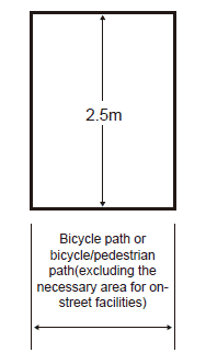 1. Bicycle path width shal l be not les s than 3m, whi le bicycle/pedestrian path width shall be no less than 4m. However, where topographical conditions or any other reasons do not permit such provisions, bicycle path width can be reduced to 2.5m.