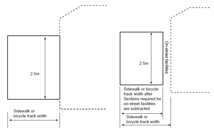 3. Where on-street facilities are provided on bicycle tracks or bicycle/pedestrian tracks, width of these tracks shall be determined in consideration of clearances as specified in the following provision.