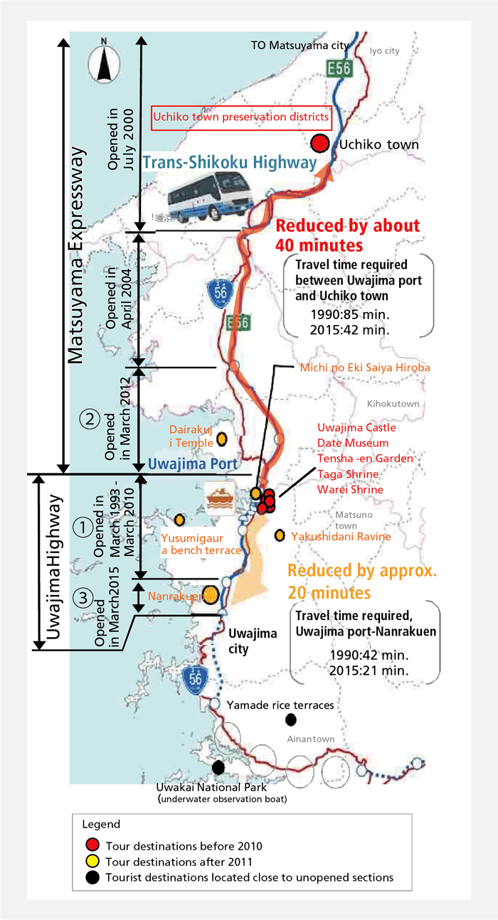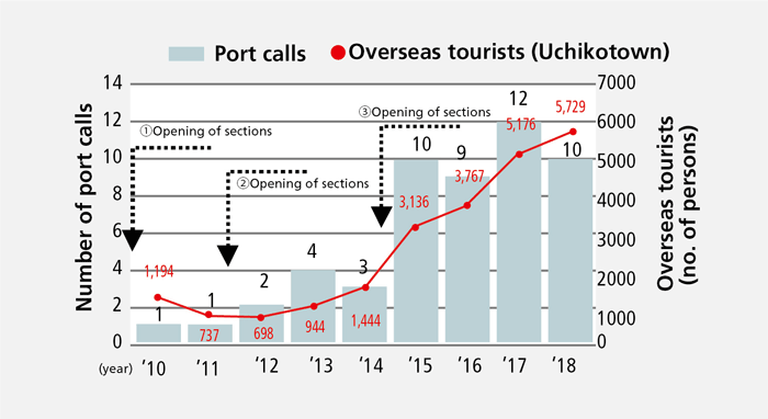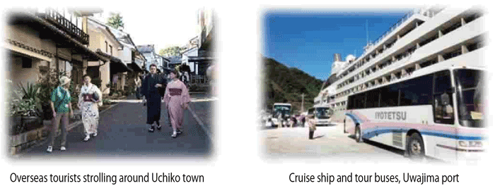 -Following construction of the Trans-Shikoku Highway, improved access to Uwajima Port resulted in increased numbers of cruise ships and overseas tourists