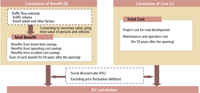 Current cost-benefit analysis based on the 3 benefits does not cover all effects created by road development. This means we need to appropriately assess a wide variety of effects other than the 3 benefits.