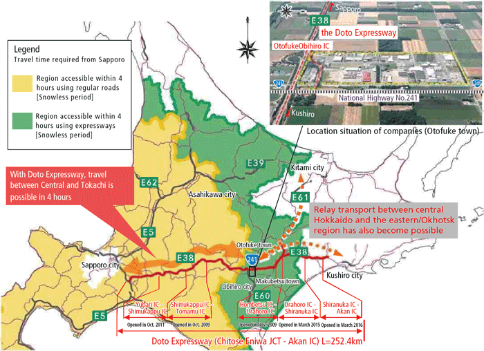 -As the Doto Expressway has been progressively opened, the region accessible in 4 hours has expanded
