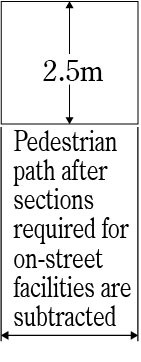 2. Where on-street facilities are provided on pedestrian paths, width shall be determined in consideration of clearances as specified in the following provision.