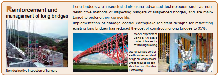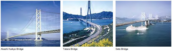 Japan is also highly prone to earthquakes, typhoons and strong winds, so cutting-edge technologies are used for constructing and maintaining longspan bridges that can withstand such severe natural conditions.
