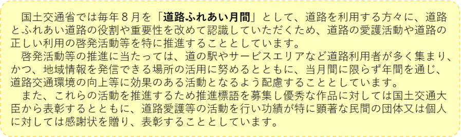 道路ふれあい月間 ~ 脈々と 輝く生命(いのち)を 繋ぐ道 ~