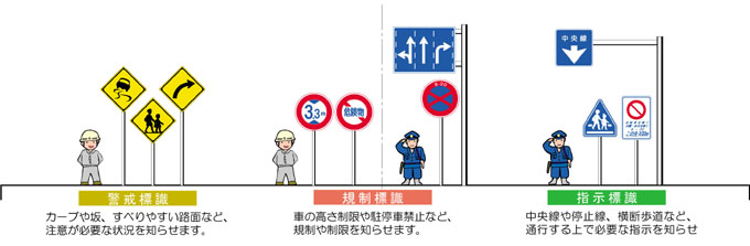 | @国土交通省、都道府県、市町村など道路管理者が設置 A主に都道府県公安委員会が設置 |
