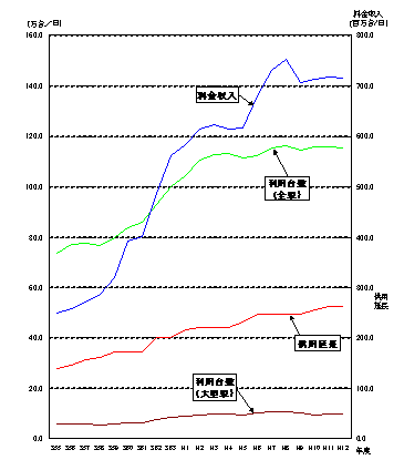 高速自動車国道※昭和38〜63年の料金車種は3車種(普通車、大型車、特大車)。大型車及び特大車を大型車と分類。