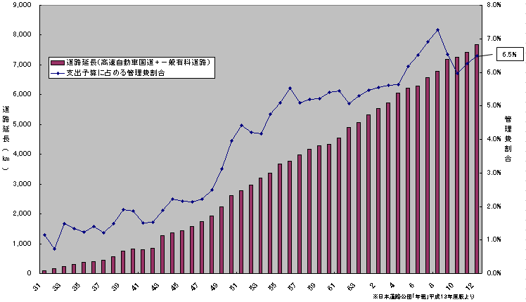日本道路公団の支出予算に占める管理費割合
