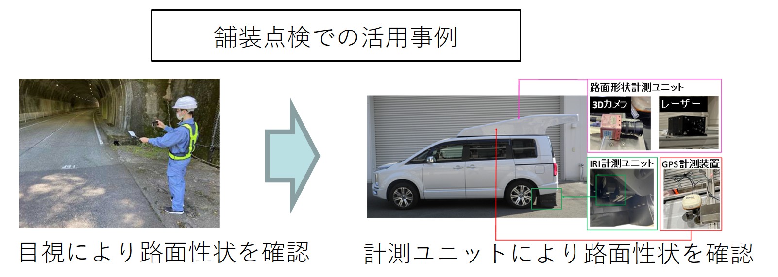 1) 舗装の変状(ひび割れ、わだち 等)を画像等で計測・判定