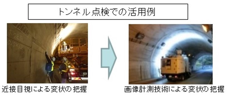 1) トンネル内面の覆工等の変状(ひび割れ等)を画像計測技術等で計測・記録