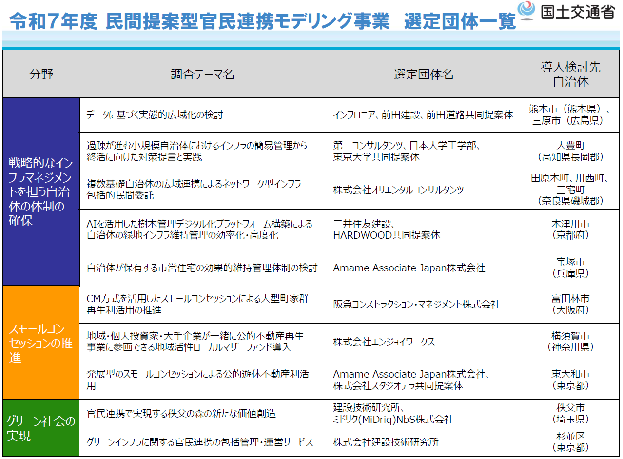 ~令和7年度「民間提案型官民連携モデリング事業」の選定結果~