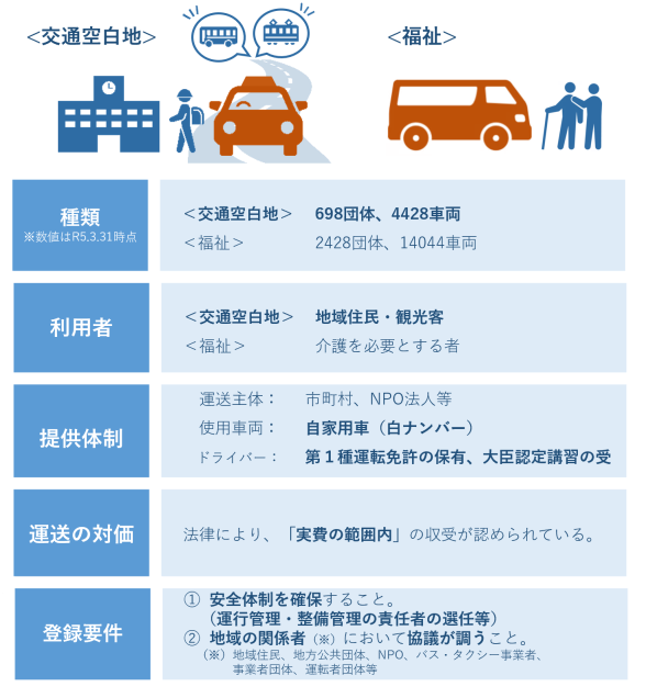 省令において「交通空白地有償運送」と「福祉有償運送」の2つを規定しています。