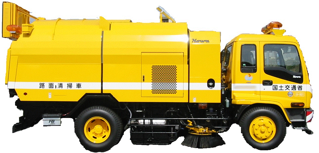 •  道路の機能確保、沿道環境の保全を目的として、路面に堆積した塵埃除去を効率的に行う車両です。