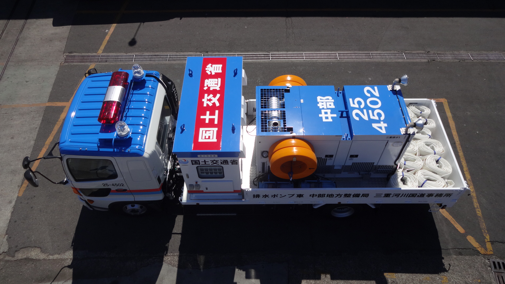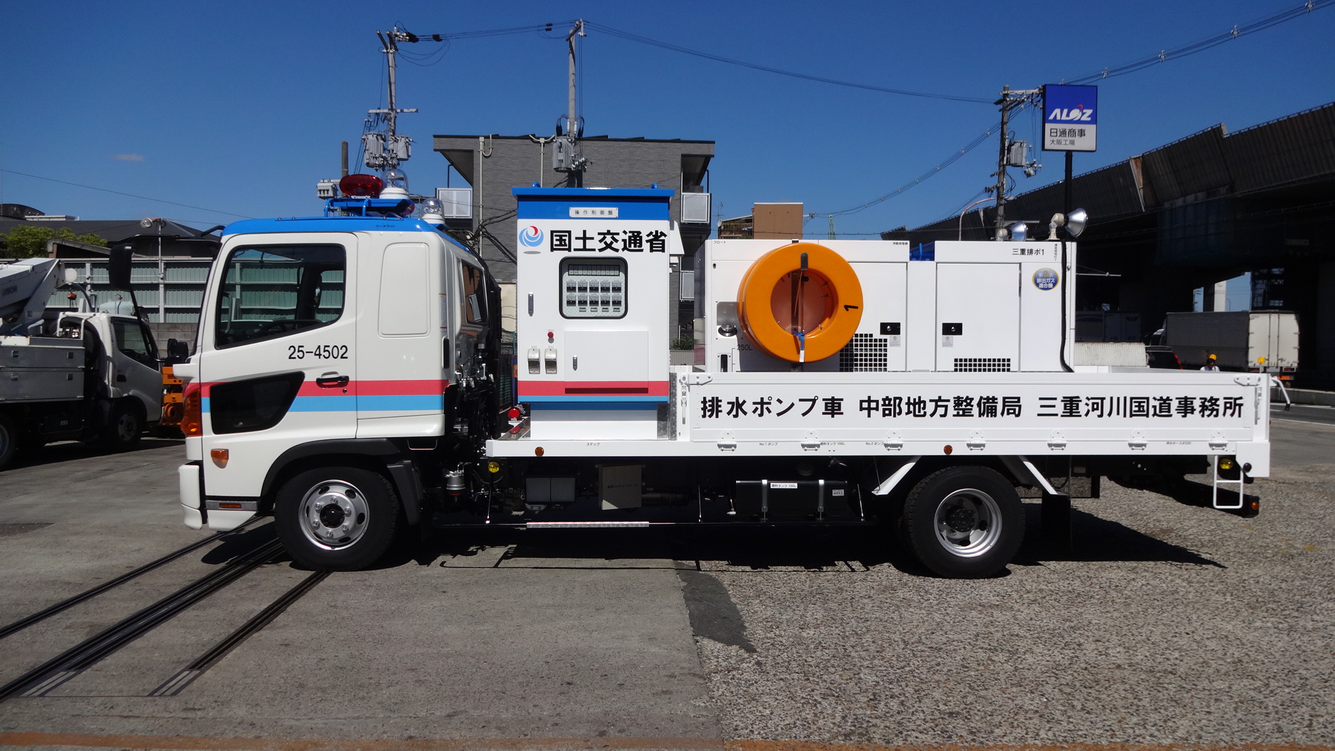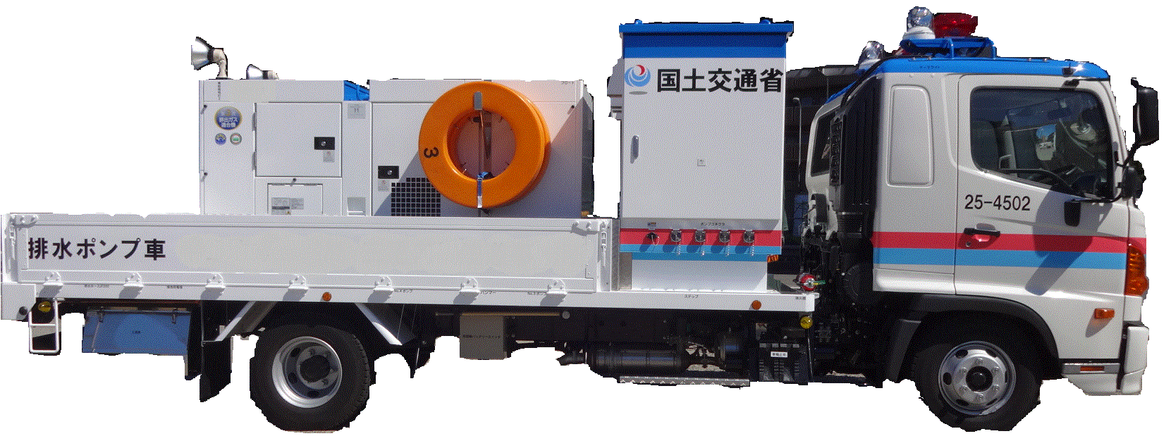 •         【排水ポンプ車側面】                           【排水ポンプ車上面】
