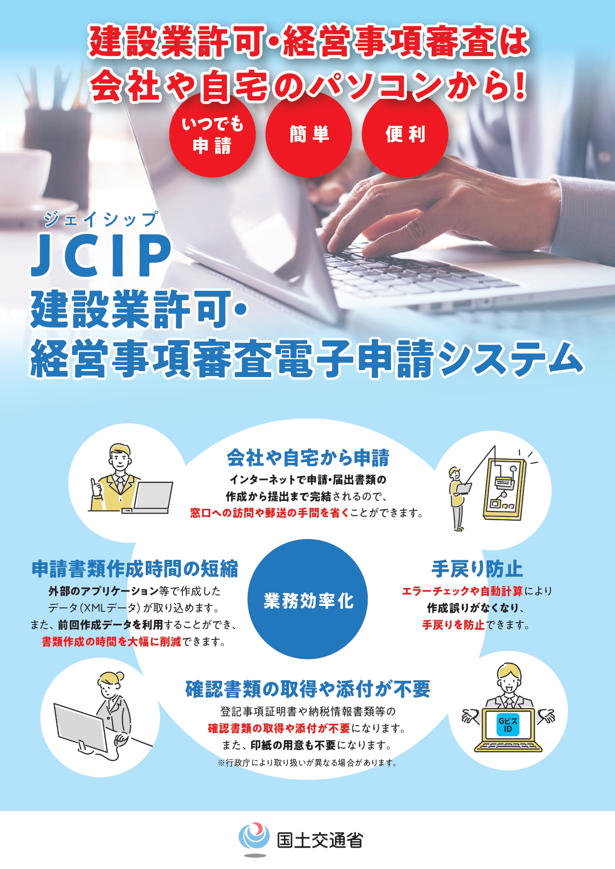 建設業許可・経営事項審査電子申請システム(JCIP)操作マニュアルは以下リンクからダウンロードいただけます。