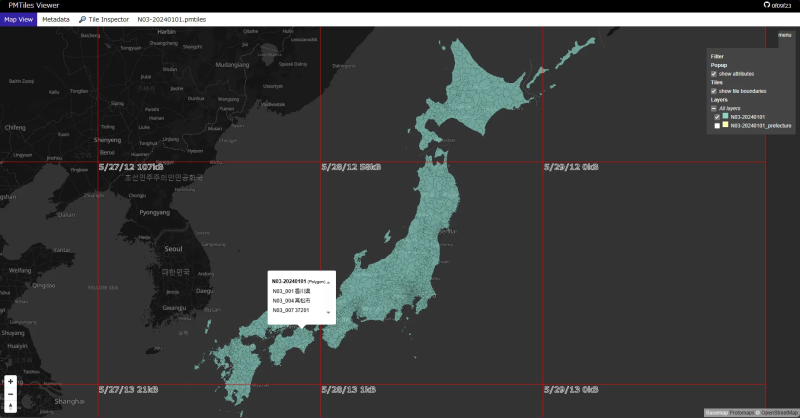 ベクトルタイルは、データ容量が軽く、地図内容の機械判読が可能な特徴を有していることから、今般、国土数値情報のベクトルタイル化に向けた可能性を検証しています(実施事業者:株式会社 Geolonia)。